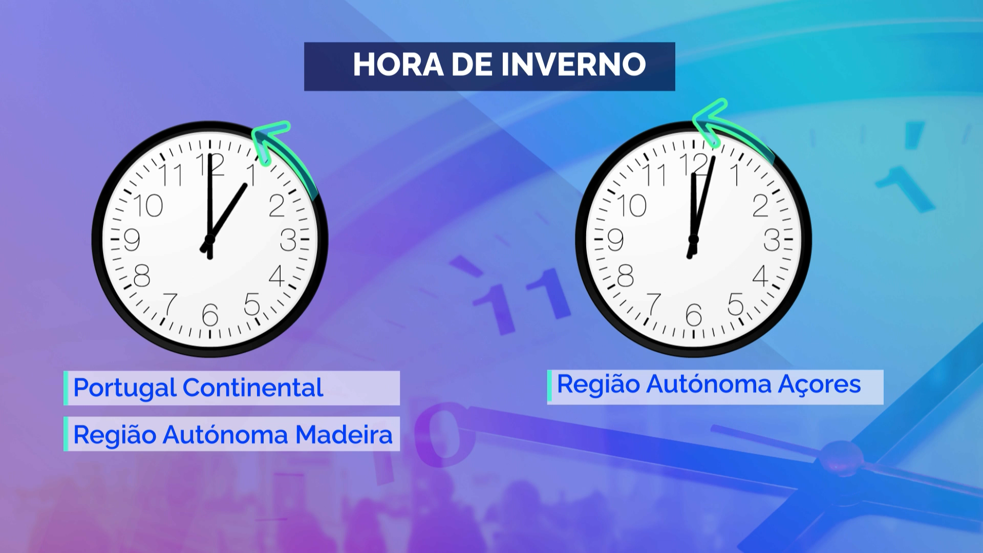 No restante território nacional, incluindo Portugal continental e a Região Autónoma da Madeira, o ajuste será feito uma hora mais tarde. Às 02h00 de domingo, os relógios recuam para a 01h00.
